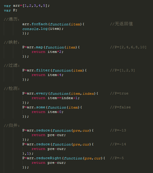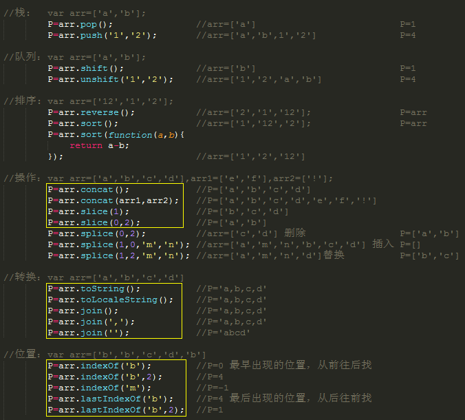 每一部分总结后有实例代码,代码中黄色框方法不改变原数组。PS:所有实例结果均一一运行所得。