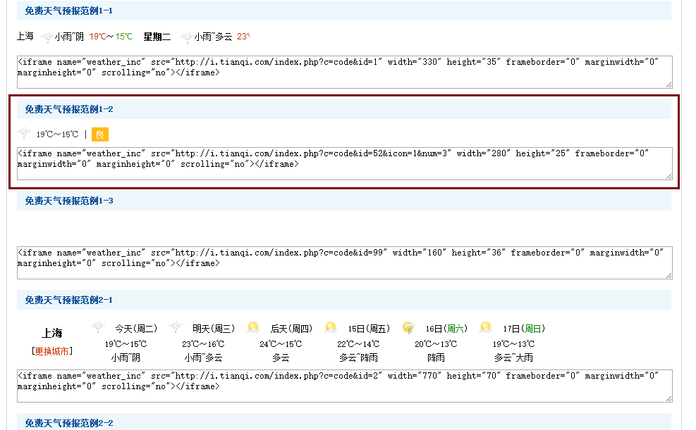 先去天气资源提供者(自行百度)挑选适合自己页面的预报
