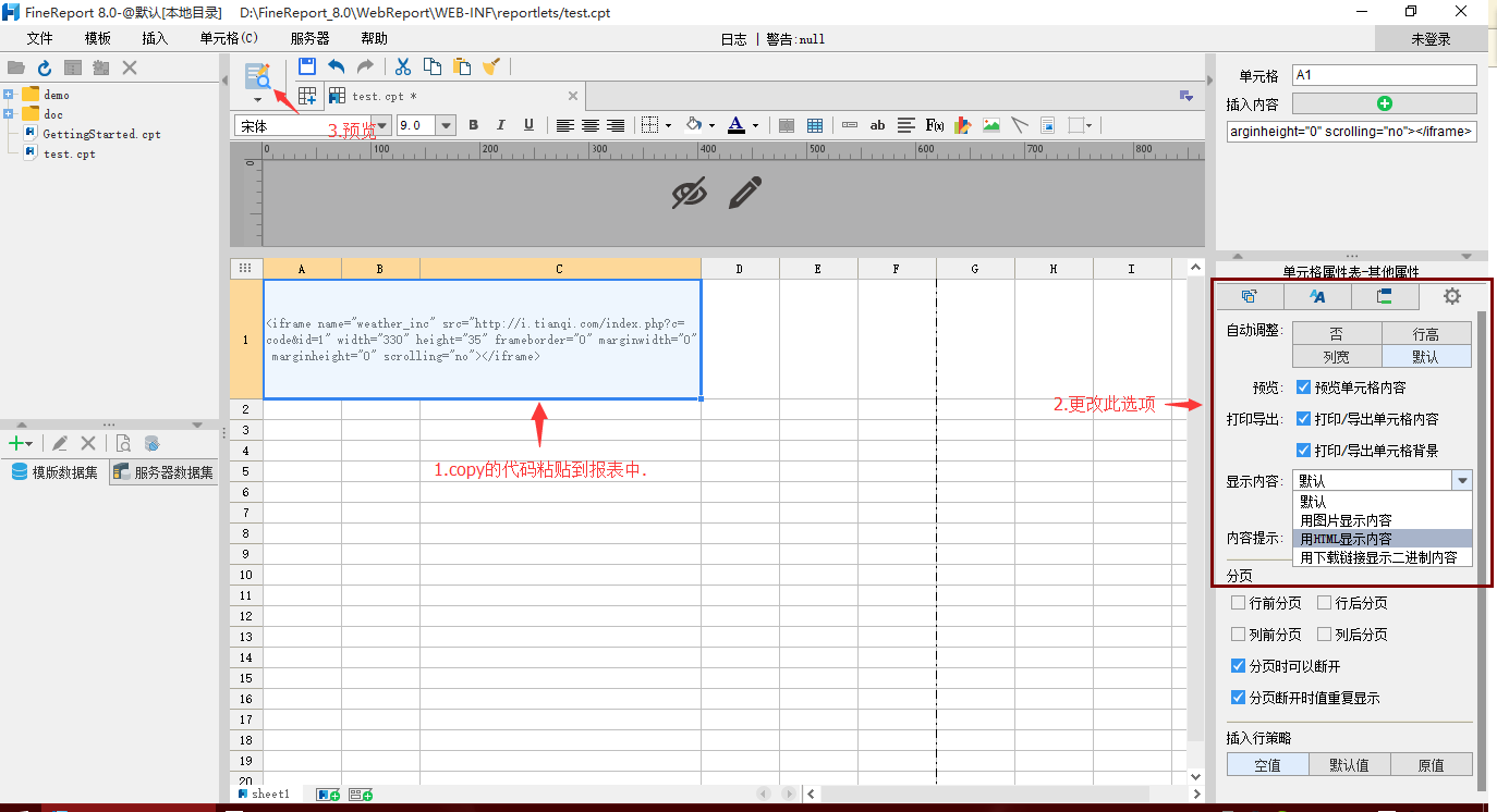 前阵子,在看天气预报的时候,发现免费天气预报的调用代码,瞬间想到可以给我开发的报表“润润色”。