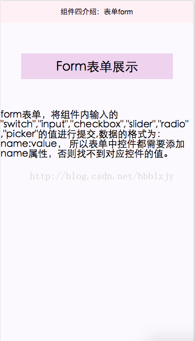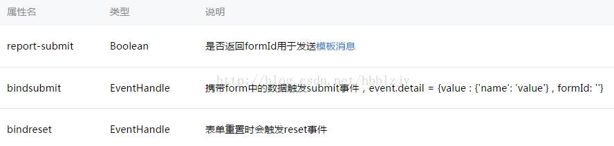 form表单,将组件内输入的"switch","input","checkbox","slider","radio","picker"的值进行提交,数据的格式为:name:value,所以表单中控件都需要添加name属性,否则找不到对应控件的值。其主要属性: