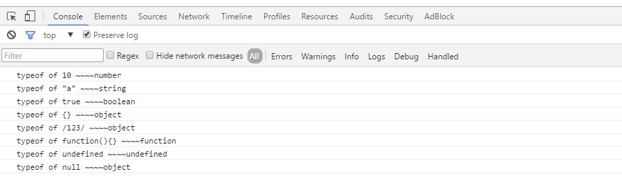 console.log('typeof of "a" ~~~~' +typeof 'a');