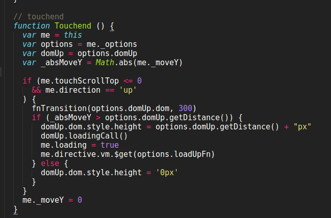 其实下拉刷新的触发逻辑也是很简单的,说白了,就是在用户手指接触屏幕的时候,捕获一下列表所在div的一个高度坐标,在用户手指脱离屏幕的时候再捕获一下列表所在div的一个高度坐标,做个差值判断一下用户的执行的动作是否是摁住该div的一个拉动动作(注意:不是滚动动作哦),从而判断是否应该激发我们的数据刷新方法。