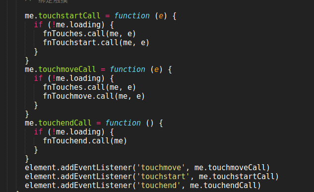 那接下来,我们需要做的就是把这些触摸事件绑定到滚动条上就行了: