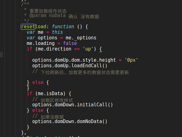 最后,因为我们的控件没办法知道我们的数据已经加载完,因此我们需要提供一个方法,由外部的数据刷新方法调用结束后,通知我们的组件,数据已经加载完,并且重新渲染下拉处或者底部处的样式: