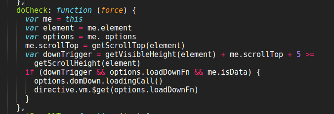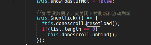 那,这里的loadDownFn就是我们的滚动刷新的方法,这个方法也是通过指令的方式传递到这个组件之中的,这点在接下来也会提到。