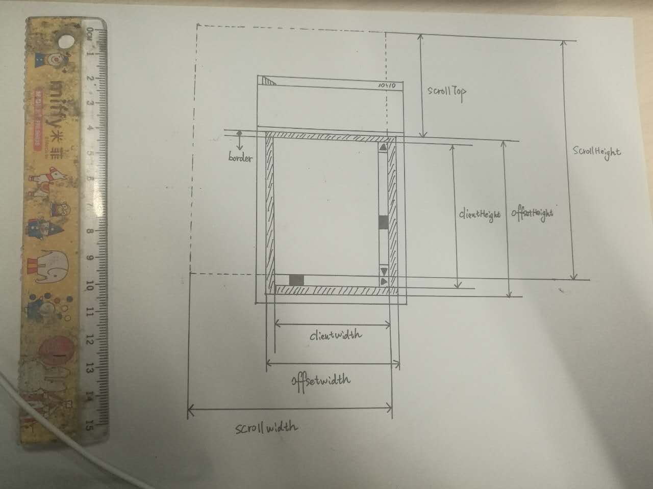 在火狐下还很好理解,它其实就是滚动条可滚动的部分还要加上border的高度还要加上横向滚动条不可用的高度,与clientHeight比起来,多个border的高度跟横向滚动条不可用的高度.