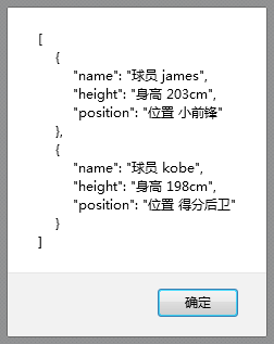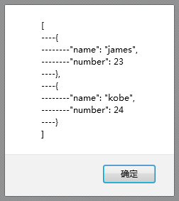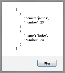 var str = '[{"name":"james","height":"203","number":"23"}, {"name":"kobe","height":"198","number":"24"}]'; //定义JSON字符串