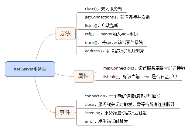 net.Server类可以用来创建一个TCP或本地服务器,继承了EventEmitter。