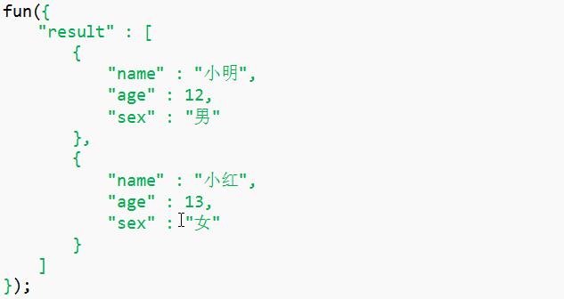 绿色部分是JSON,外面的fun();是函数的调用,是padding补充部分。
