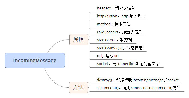 代码中的request事件监听的参数req,res分别是http.IncomingMessage,http.ServerResponse的实例,IncomingMessage对象是由 http.Server 或 http.ClientRequest 创建,并且被自动添加到'request' and 'response' 事件监听函数的第一个参数,是一个可读流,主要包括一些状态信息,请求信息,属性如下所示: