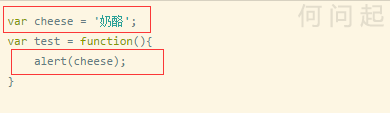 变量 cheese 是在全局作用域中的一个变量,当你创建了一个 test 函数,那么,test 和 cheese 就共享一个全局作用域。