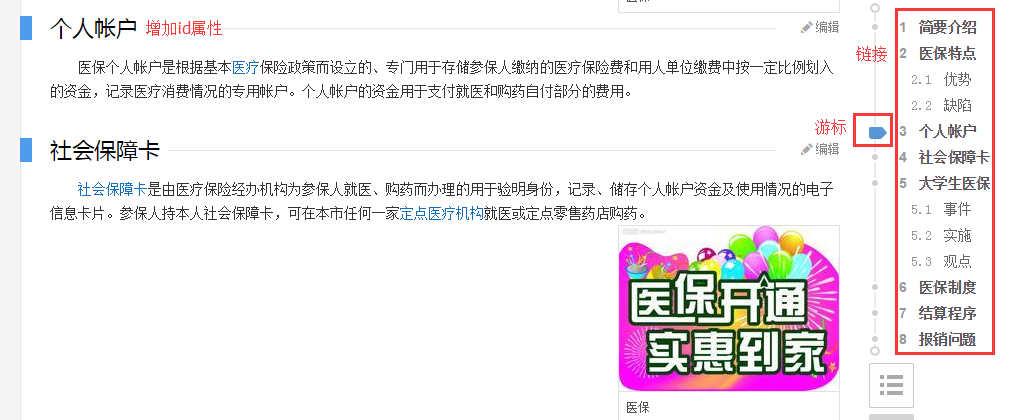 一、首先来看一下需求(截图为百度百科“医保”词条):