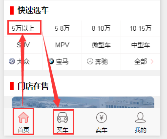 我在首页点击“5万以上”他会把跳转到买车页然后同时把“5万以上”这个筛选条件带到买车页。