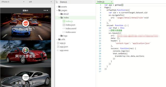 所以整体软件结构非常简单,一个品牌列表页,一个左右滑动的详情页。当然由于微信小程序的限制,不能外链,不能加iframe视频,因此图集、视频功能取消。