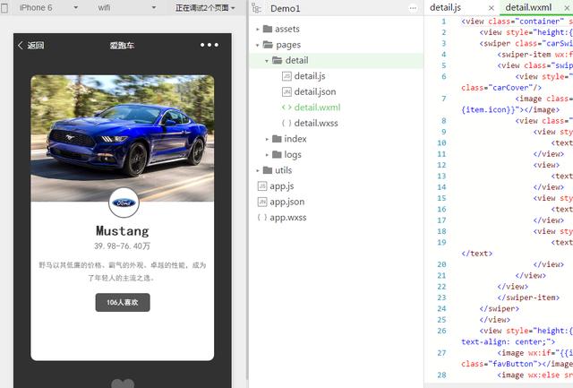 然后就是详情页,好在微信提供了一个类似banner广告的组建Swiper,功能可以说是异常地不强大!