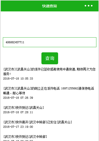 第一步:产品需求,我们需要实现如下图的一个功能,在文本框输入快递单号,点击查询,下面出来我们需要的快递信息