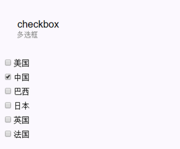 | bindchange | EventHandle | checkbox-group中选中项发生改变是触发change事件,detail = {value:[选中的checkbox的value的数组]} |