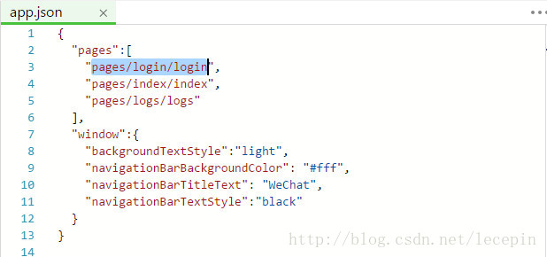 在app.json中添加登陆页面pages/login/login,并设置为入口。