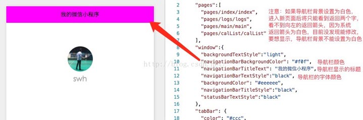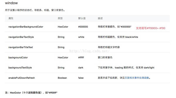 用于设置小程序的状态栏、导航条、标题、窗口背景色。