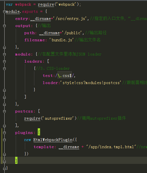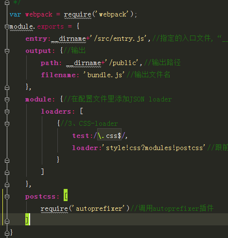 并在webpack配置文件中进行设置,只需要新建一个postcss关键字,并在里面申明依赖的插件,如下,现在你写的css会自动根据Can i use里的数据添加不同前缀了。