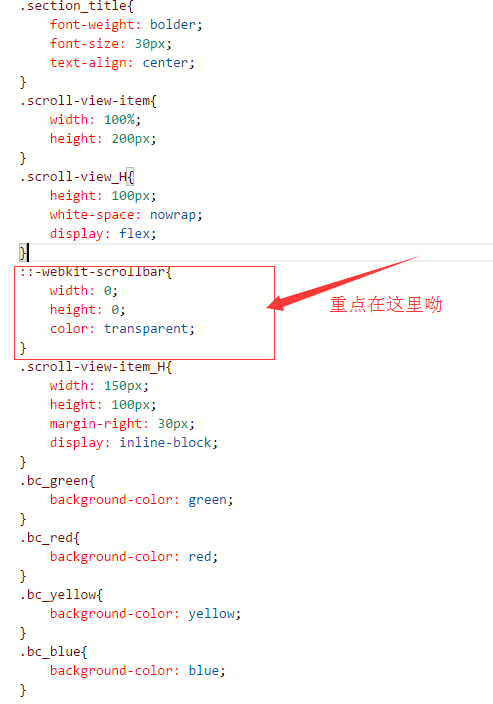 在书写网页的时候,往往会为了页面的美观,而选择去掉滚动区域默认的滚动条,而在这里,就是为小程序去掉滚动条的其中的一种方法: