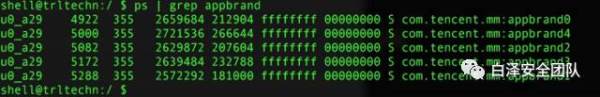 支持最多同时有五个小程序在加载运行状态,每个小程序使用独立进程运行,如果当前开启的小程序已位于缓存进程中,则无需重新加载直接开启(速度快),否则重新加载并替换(如果已有五个缓存进程存在)存在时间最久的缓存进程,若当前未满五个缓存进程,则从未用进程中随机取得一个使用。下图展示微信APP同时已开启过五个小程序的对应进程。