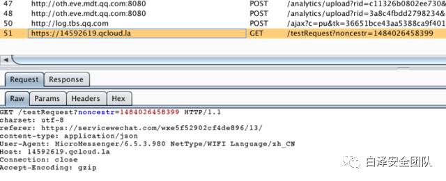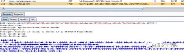 微信小程序的网络请求通过微信APP实现转发,微信平台可能可以获取到小程序的所有网络请求和存储数据,因此对于小程序业务敏感的数据,建议由小程序再做一层保护;小程序的操作轨迹日志会加密传送到腾讯TBS后台,如下图所示。