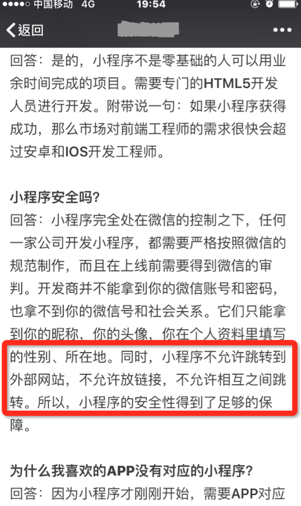 小程序在微信的生态下运行,不开放给个人使用(需要企业)。在小程序中不允许调整到外部网站,也不允许放链接。同时微信在小程序发布前会对小程序进行审核。