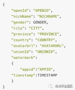用户信息获取,包含以下信息: