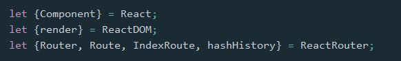 let {Router, Route, IndexRoute, Redirect, IndexRedirect, Link, IndexLink, hashHistory, browserHistory} = ReactRouter;