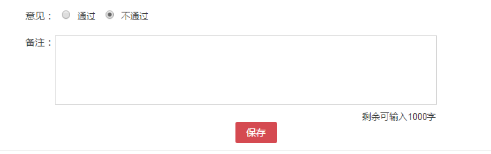 首先我讲一下我要实现的功能,我的需求是在点击不通过且备注为空的时候触发验证,提示“必须填写内容”。那么在通过备注为空,通过备注不为空,不通过备注不为空的情况下都不能触发验证提示信息。而如果validate[required]这样的话,只要不填写备注信息都会触发提示信息。所以我的思路是,当点击保存按钮的时候判断,点击的是哪个radio,点击不通过的时候给不通过的radio添加一个自定义属性,同时赋值。而当点击通过radio的时候删除这个自定义属性。然后接着进入验证,也就是进入自定义函数,获取到不通过radio的自定义属性值,获取到备注的value,然后判断这两个条件是否同时成立,如果条件成立,则首先rules.push('required');因为我们前面说了如果想要实现自定义函数验证必须要有required,然后接着return options.allrules.required.alertText; 这句话是什么意思呢?就是返回你要提示的信息。而这个提示信息则另有地方进行设置。