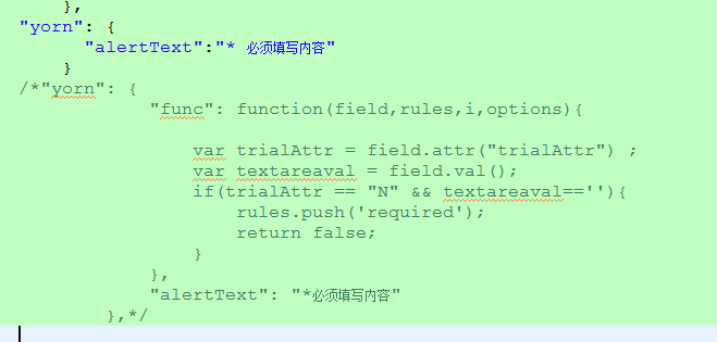 html文件,validate[funcCall[yorn]]设置自定义函数validate[funcCall[自定义函数名]]