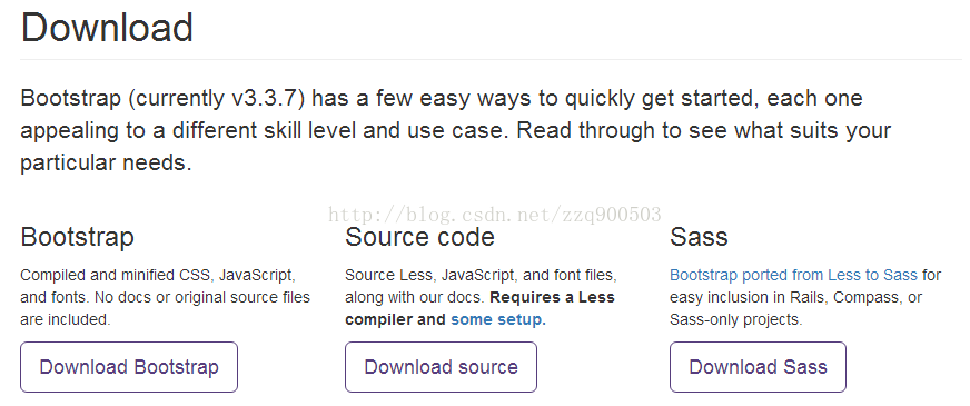 Download Source:下载源代码。点击该按钮,您可以直接从 from 上得到最新的 Bootstrap LESS 和 JavaScript 源代码。