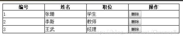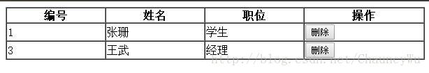 //到这里,json中的数据已经添加到表格中,下面为每行末尾添加删除按钮