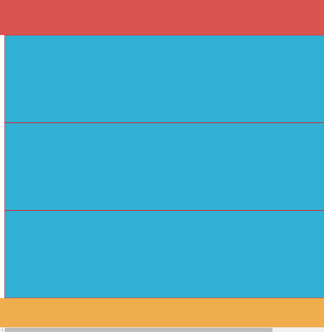 不仅中间的div被挤得位置错乱,网页的长度还自动加长了,这可不是我们需要的效果,这时,可把每个分区的class属性同时设置为col-lg col-md col-sm col-xs,自适应每一种大小的屏幕,改动后的代码如下: