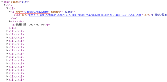 使用chrome的开发者工具,可以发现,缩略图列表在 class="list"的div里,a标签的href属性的值就是单张壁纸所在的页面。
