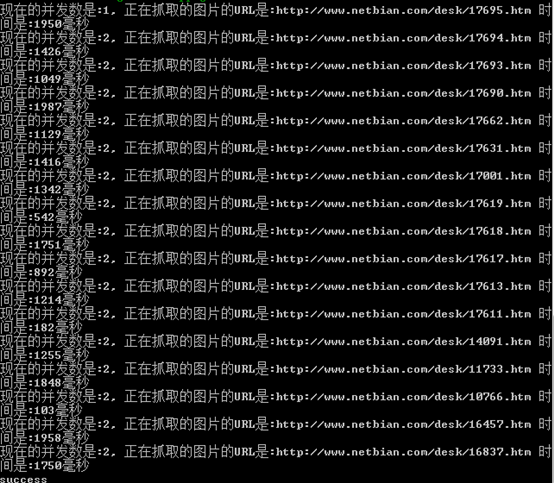 console.log('现在的并发数是:' + count + ', 正在抓取的图片的URL是:' + _pic_url + ' 时间是:' + delay + '毫秒');