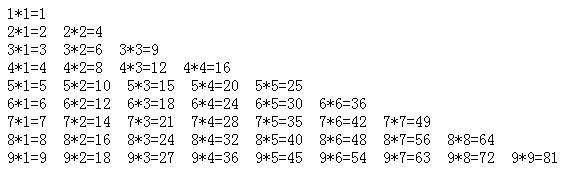 {document.write ("<br/>"); break;} //用的if语句,如果这两个数字相同了 那么跳出,另起一行