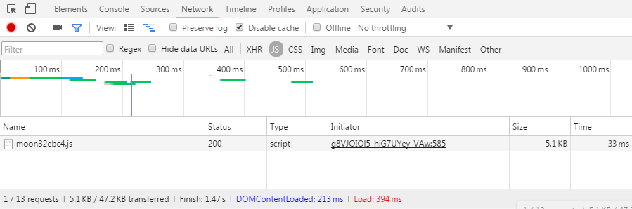 呵呵,以下勾起了我侦探的欲望。页面加载后的异常点就是只加载了一个js,如下图所示: