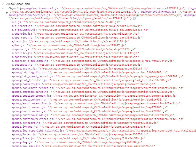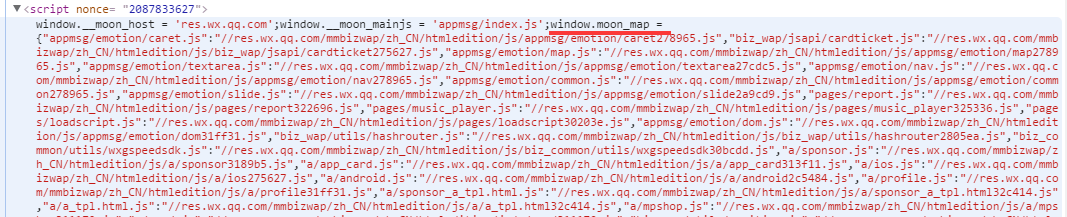 可以看出,微信使用的是自己开发的脚手架moon.js,在这个网页中的实际文件名是moon32ebc4.js。