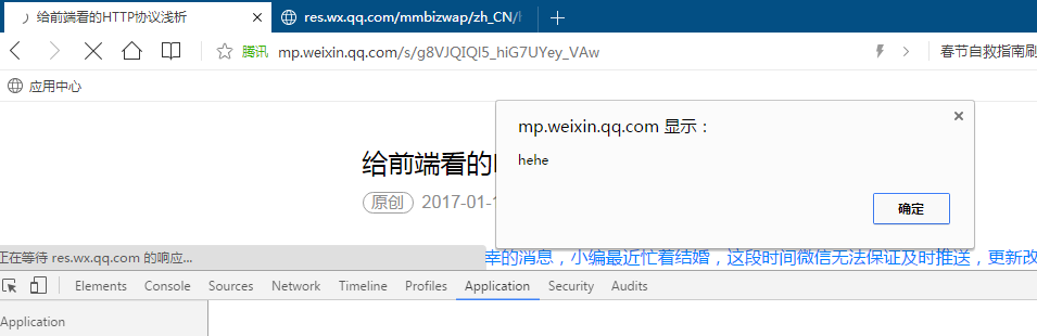 此处是为了验证微信的缓存机制是否存在XSS攻击,看到这里的童鞋可千万不要去做坏事。