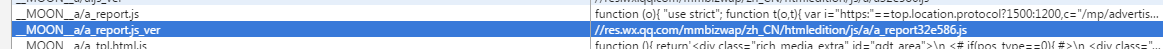 以__MOON__a/a_report.js为例,版本信息用key __MOON__a/a_report.js_ver存储,存储的value为//res.wx.qq.com/mmbizwap/zh_CN/htmledition/js/a/a_report32e586.js。
