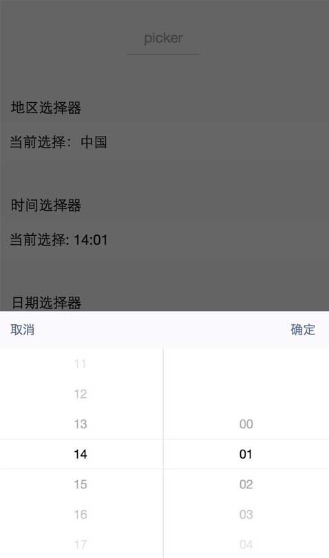 <picker mode="time" value="{{time}}" start="09:01" end="21:01" bindchange="bindTimeChange">