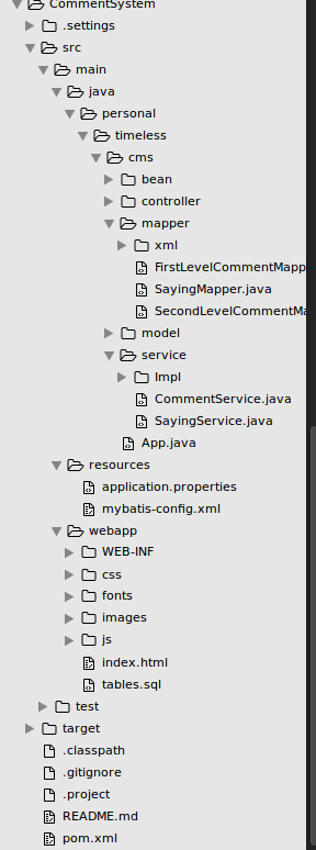 评论系统关键是嵌套层数以及数据库表设计。嵌套层数多,表结构复杂,呈现也麻烦,最后决定实现一个二级评论。系统由maven构建,springboot快速搭建spring环境。前台采用angularjs+bootstrap,后台使用springmvc+mybatis,数据库采用MySQL.前台请求后台API操作评论。