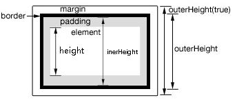 outerWidth(true)/outerHeight(true):获得整个元素的宽度/高度,包括外边距、边框、内边距和内容;