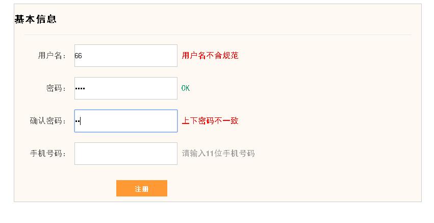 用原生JS写一个简单的表单验证