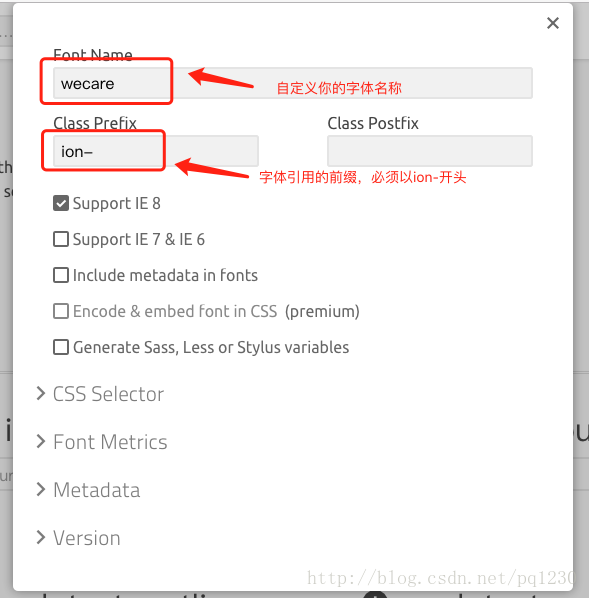 注:将一个通用的选择器改为一个类,然后让被应用的类去继承,是因为使用[class^="ion-"], [class*=" ion-"] 来选择时会影响到ionic2自带的图标库,这也是ionic2字体库的写法。