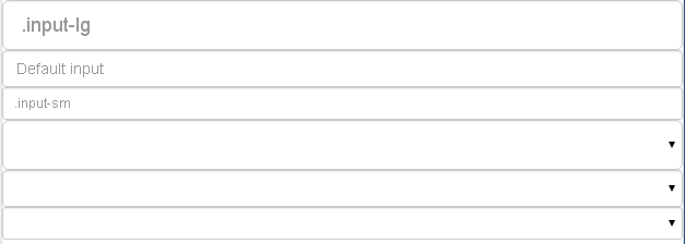 <!DOCTYPE HTML> <html> <head> <link rel="stylesheet" href="/stylesheets/bootstrap.min.css" rel="external nofollow" rel="external nofollow" rel="external nofollow" rel="external nofollow" rel="external nofollow" rel="external nofollow" rel="external nofollow" rel="external nofollow" rel="external nofollow" rel="external nofollow" rel="external nofollow" rel="external nofollow" rel="external nofollow" rel="external nofollow" rel="external nofollow" rel="external nofollow" rel="external nofollow" > </head> <body> <input class="form-control input-lg" type="text" placeholder=".input-lg"> <input class="form-control" type="text" placeholder="Default input"> <input class="form-control input-sm" type="text" placeholder=".input-sm"> <select class="form-control input-lg">...</select> <select class="form-control">...</select> <select class="form-control input-sm">...</select> </body> </html>