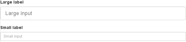 <!DOCTYPE HTML> <html> <head> <link rel="stylesheet" href="/stylesheets/bootstrap.min.css" rel="external nofollow" rel="external nofollow" rel="external nofollow" rel="external nofollow" rel="external nofollow" rel="external nofollow" rel="external nofollow" rel="external nofollow" rel="external nofollow" rel="external nofollow" rel="external nofollow" rel="external nofollow" rel="external nofollow" rel="external nofollow" rel="external nofollow" rel="external nofollow" rel="external nofollow" > </head> <body> <form class="form-horizontal"> <div class="form-group form-group-lg"> <label class="col-sm-2 control-label" for="formGroupInputLarge">Large label</label> <div class="col-sm-10"> <input class="form-control" type="text" id="formGroupInputLarge" placeholder="Large input"> </div> </div> <div class="form-group form-group-sm"> <label class="col-sm-2 control-label" for="formGroupInputSmall">Small label</label> <div class="col-sm-10"> <input class="form-control" type="text" id="formGroupInputSmall" placeholder="Small input"> </div> </div> </form> </body> </html>