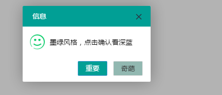 layer.alert('墨绿风格,点击确认看深蓝', {